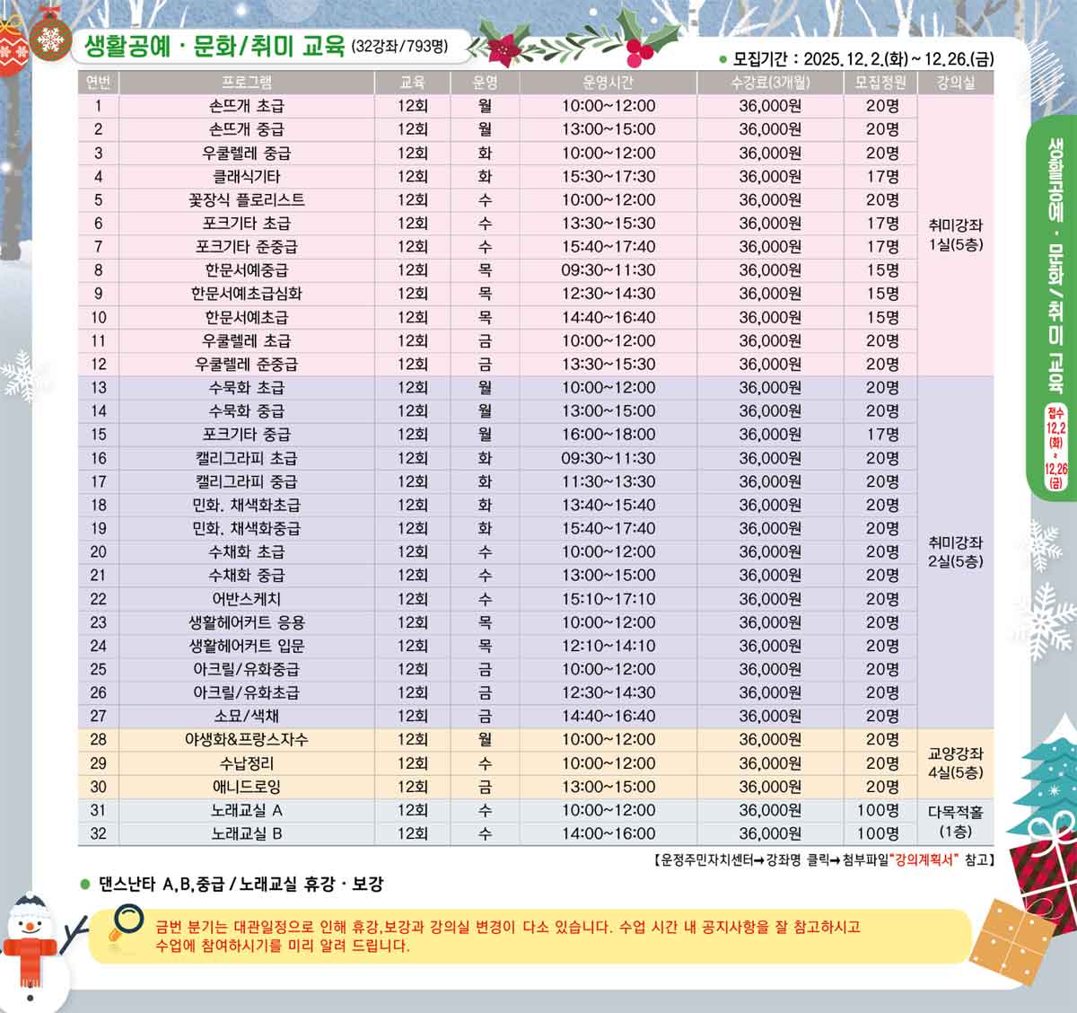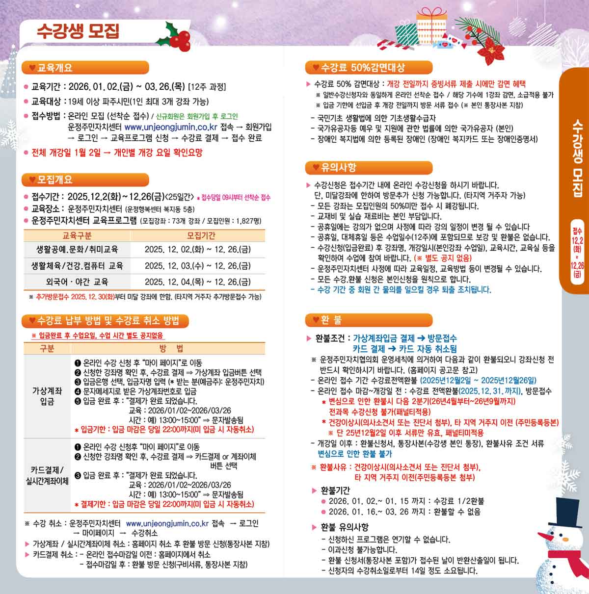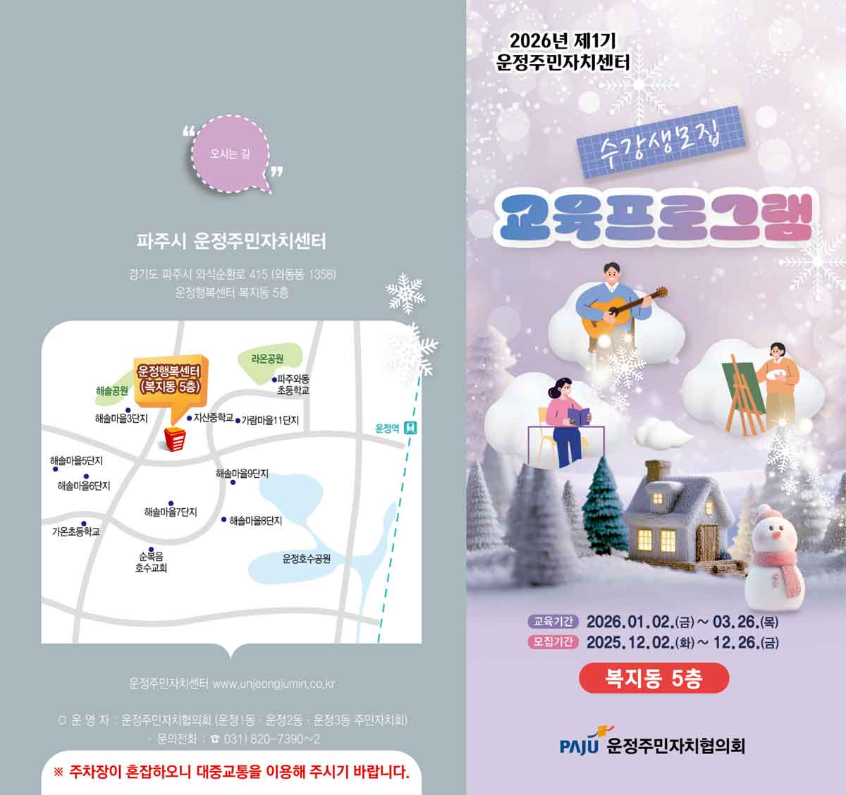 2026년 제1기 운정주민자치센터 교육프로그램안내